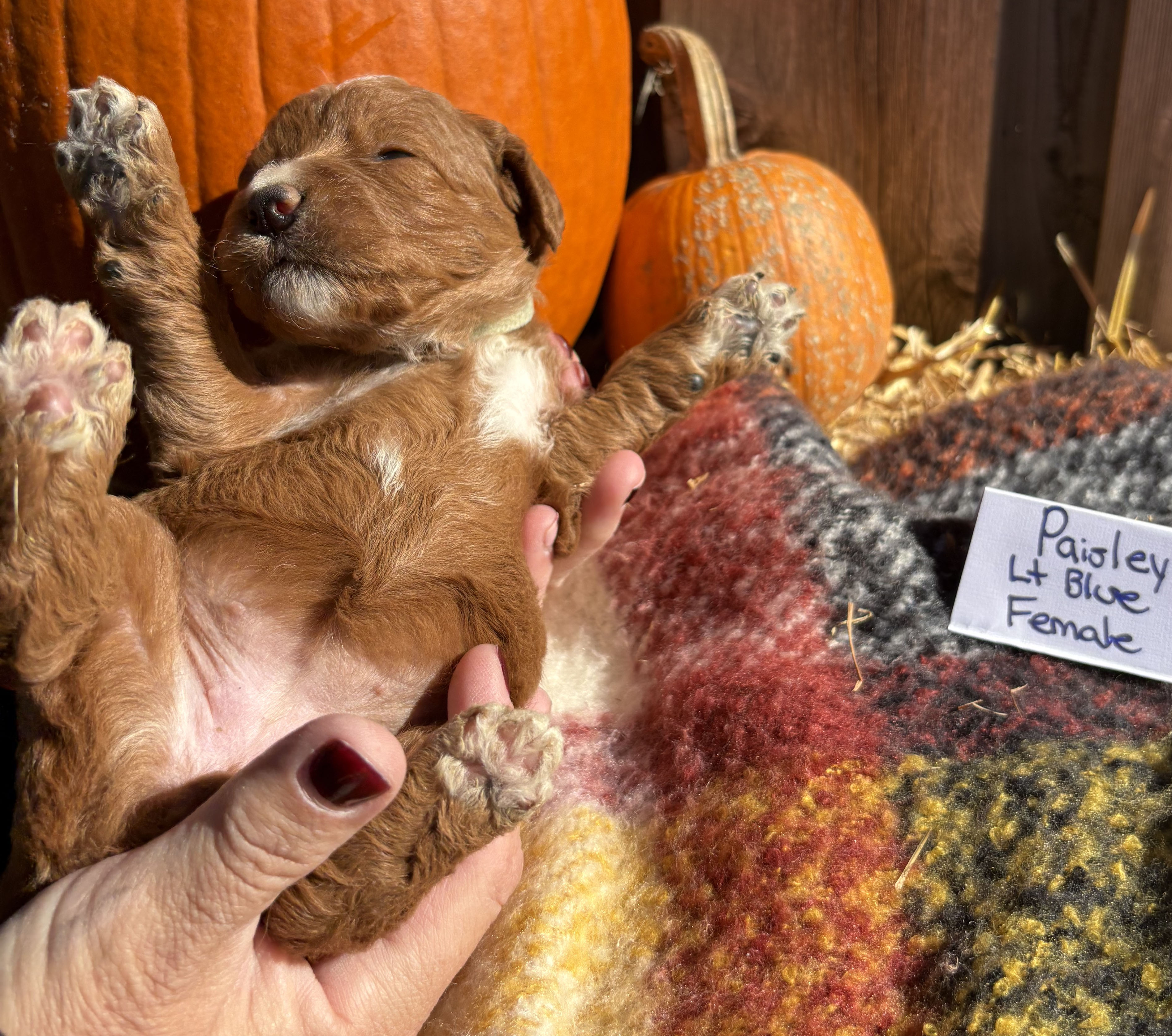 Colours: Gold with White, Apricot with White, Red with White, Apricot/Red Parti