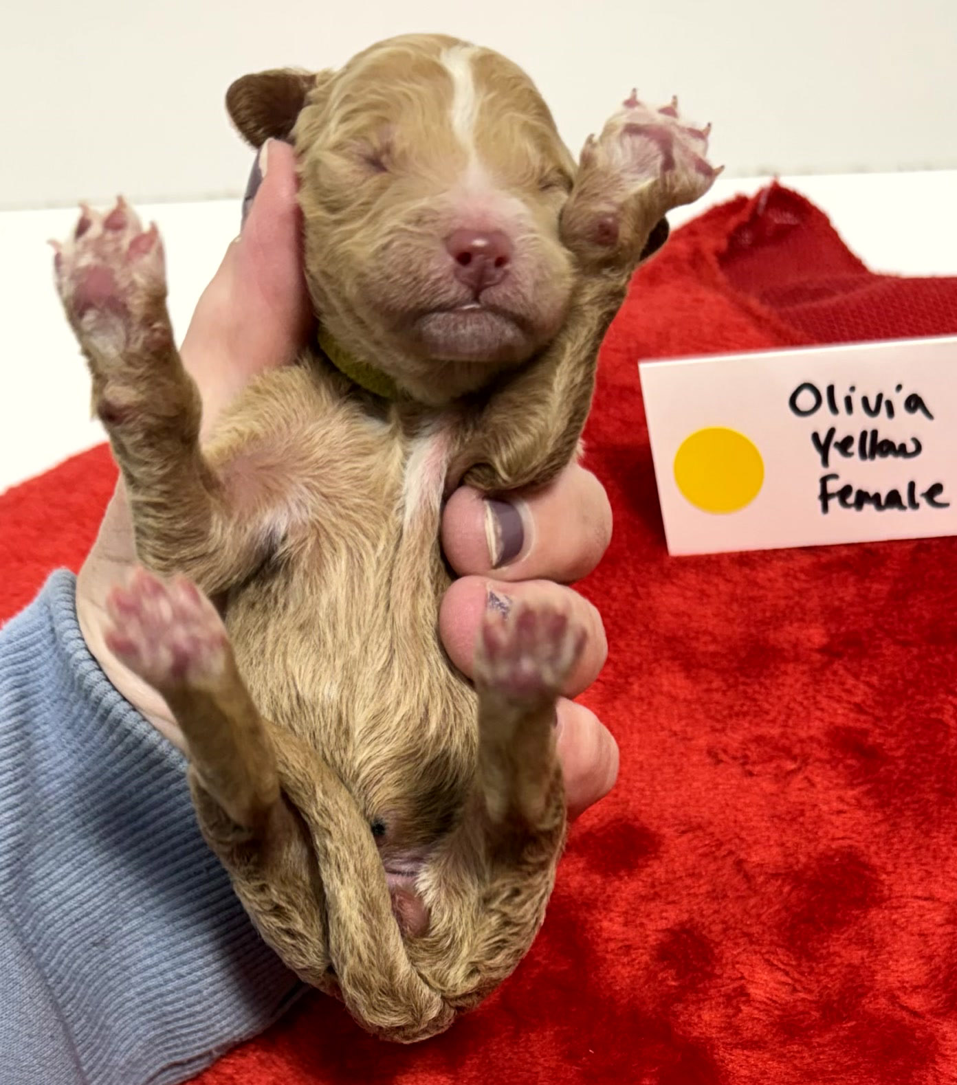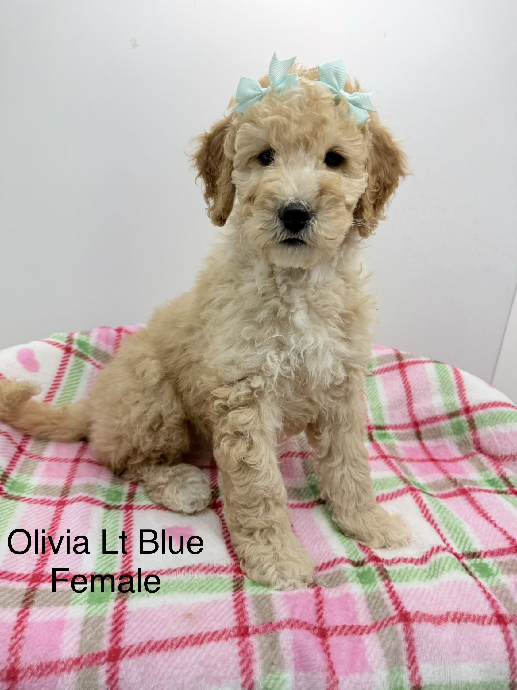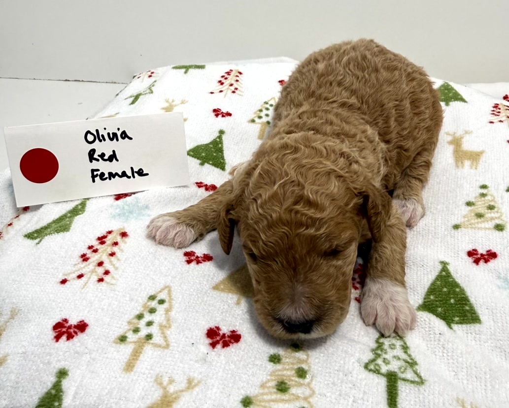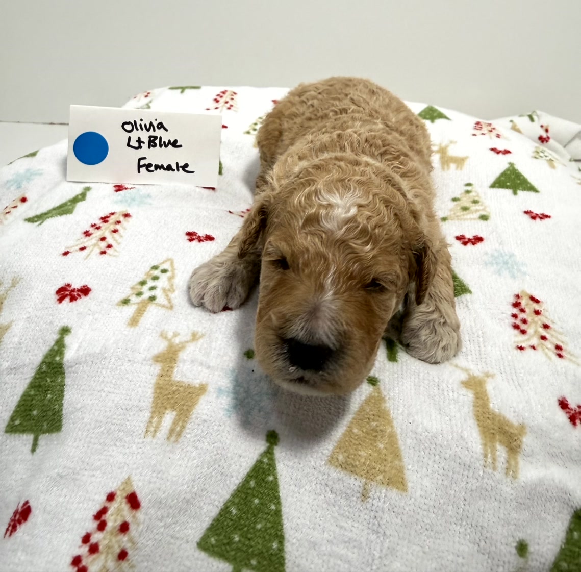 Olivia is a sweet and stunning 2-year-old apricot F1 Goldendoodle with a soft, wavy coat and a heart full of love. She's intelligent, gentle, and has a calm, affectionate nature that makes her an ideal family companion. She is about 50 lbs and 21" at the shoulder.