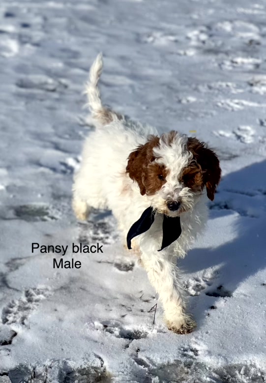Tiki is a cream and white parti moyen poodle weighing 25 lbs. His favourite thing is running in the yard and cuddles.