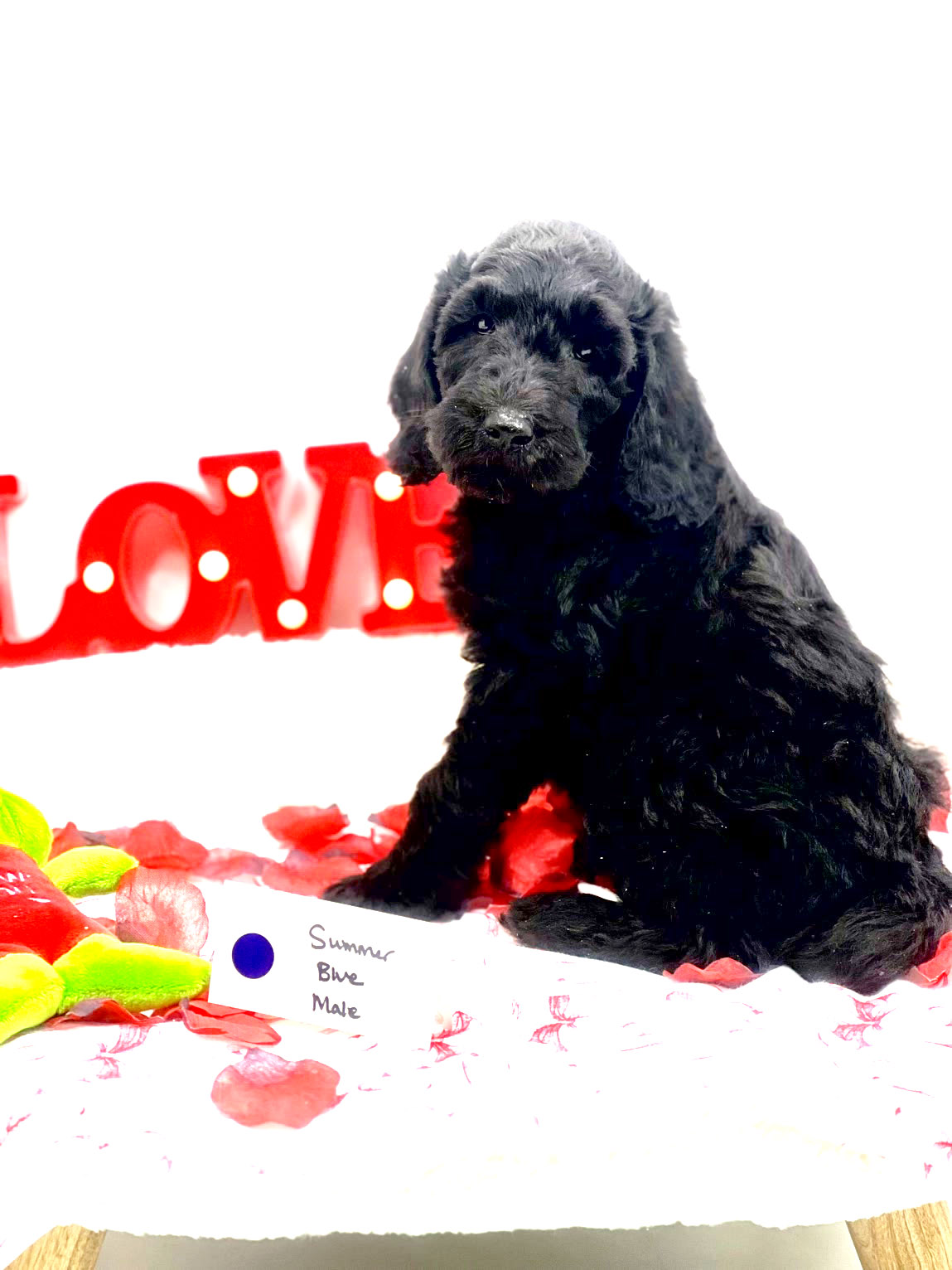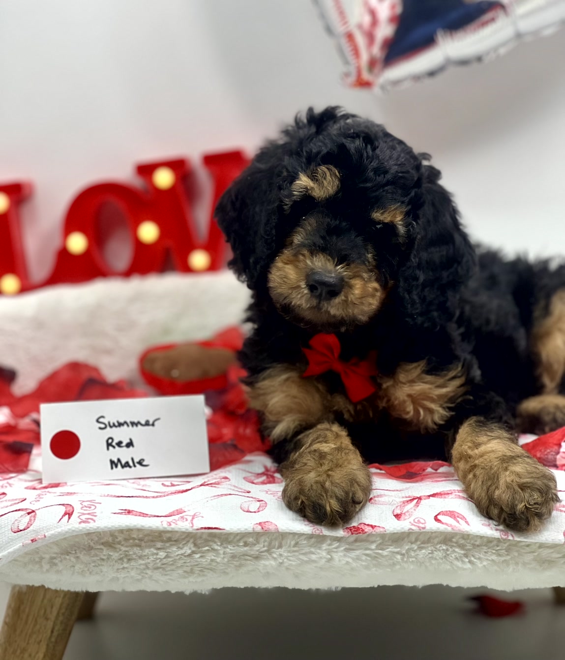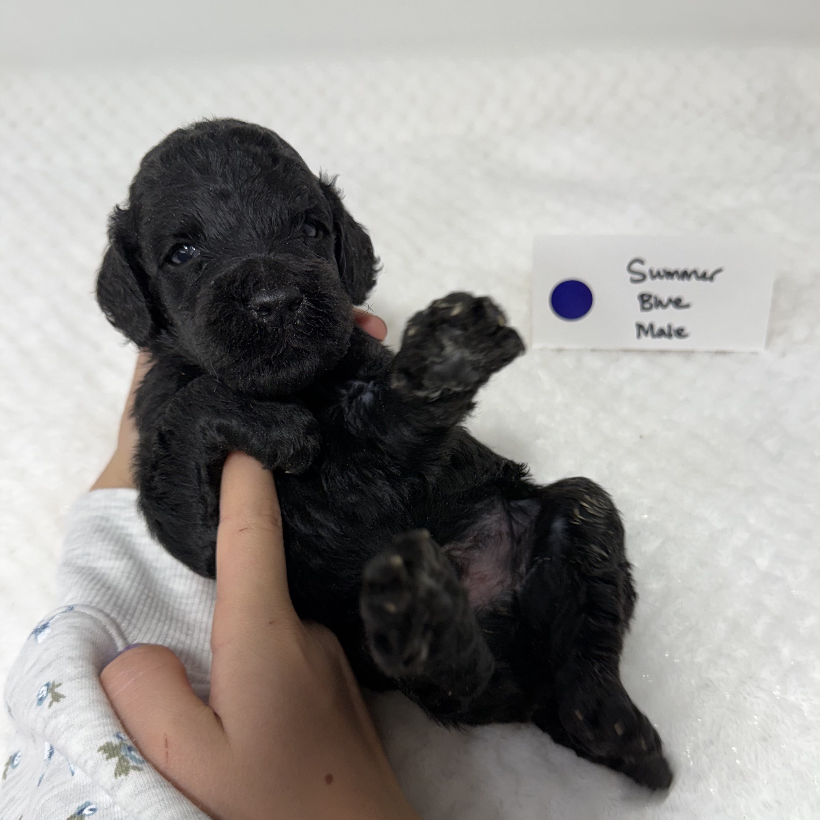 Summer is a sweet and stunning Labradoodle with a soft, wavy coat and a heart full of love. She's intelligent, gentle, and has a calm, affectionate nature that makes her an ideal family companion. She is about 30 lbs