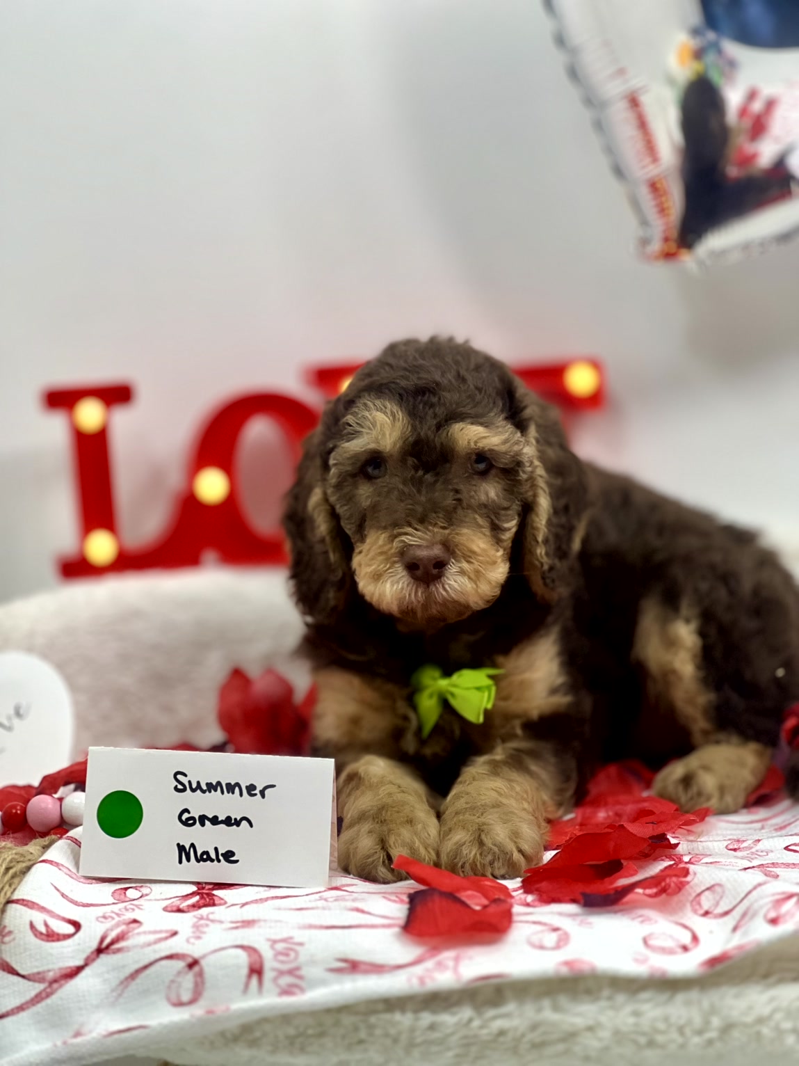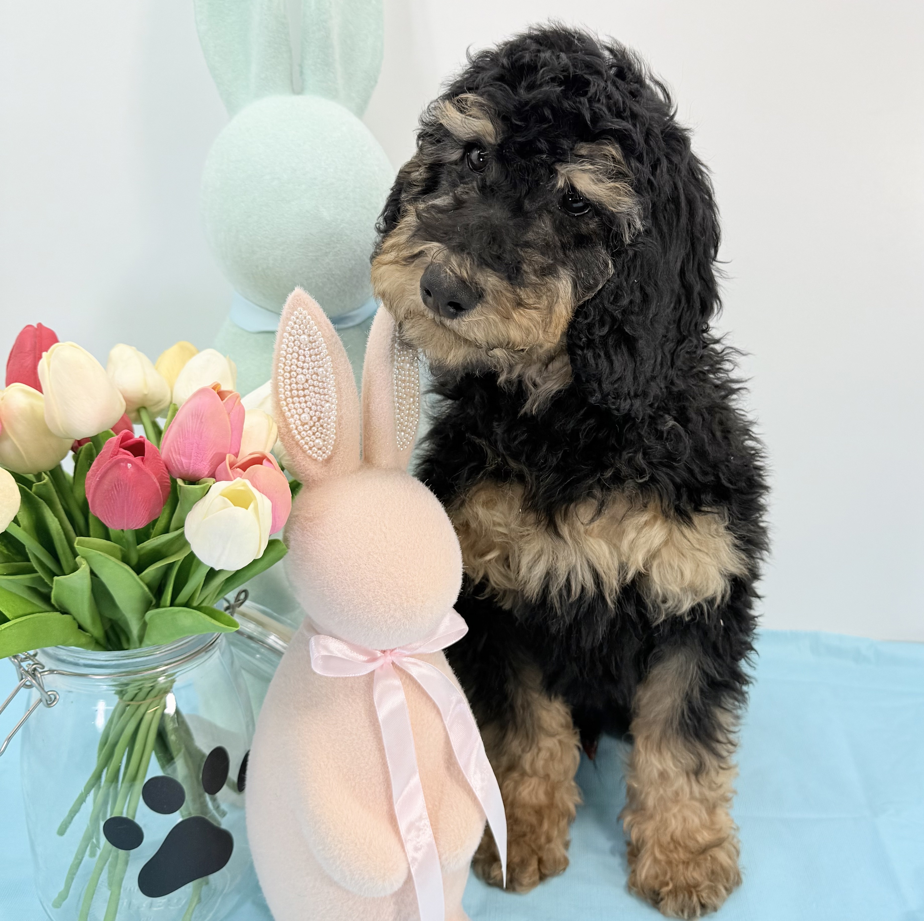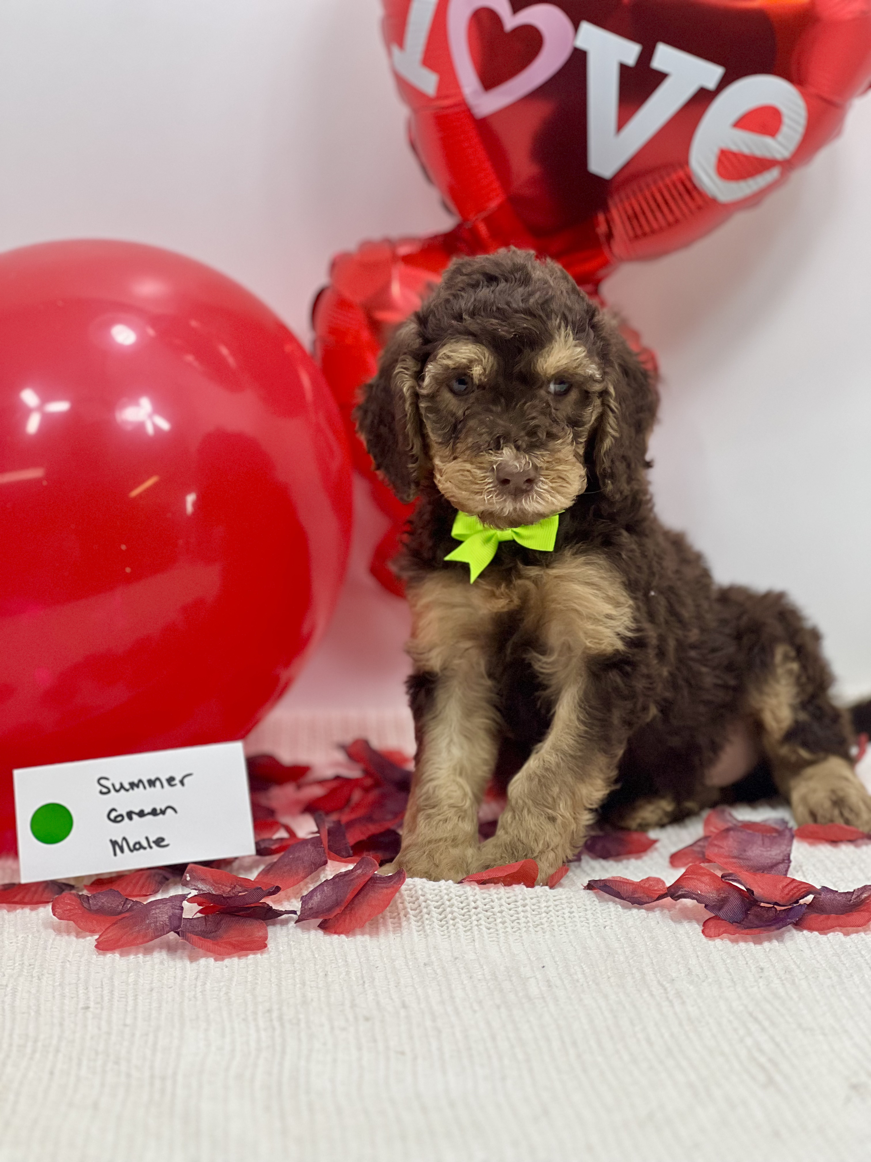 Summer is a sweet and stunning Labradoodle with a soft, wavy coat and a heart full of love. She's intelligent, gentle, and has a calm, affectionate nature that makes her an ideal family companion. She is about 30 lbs