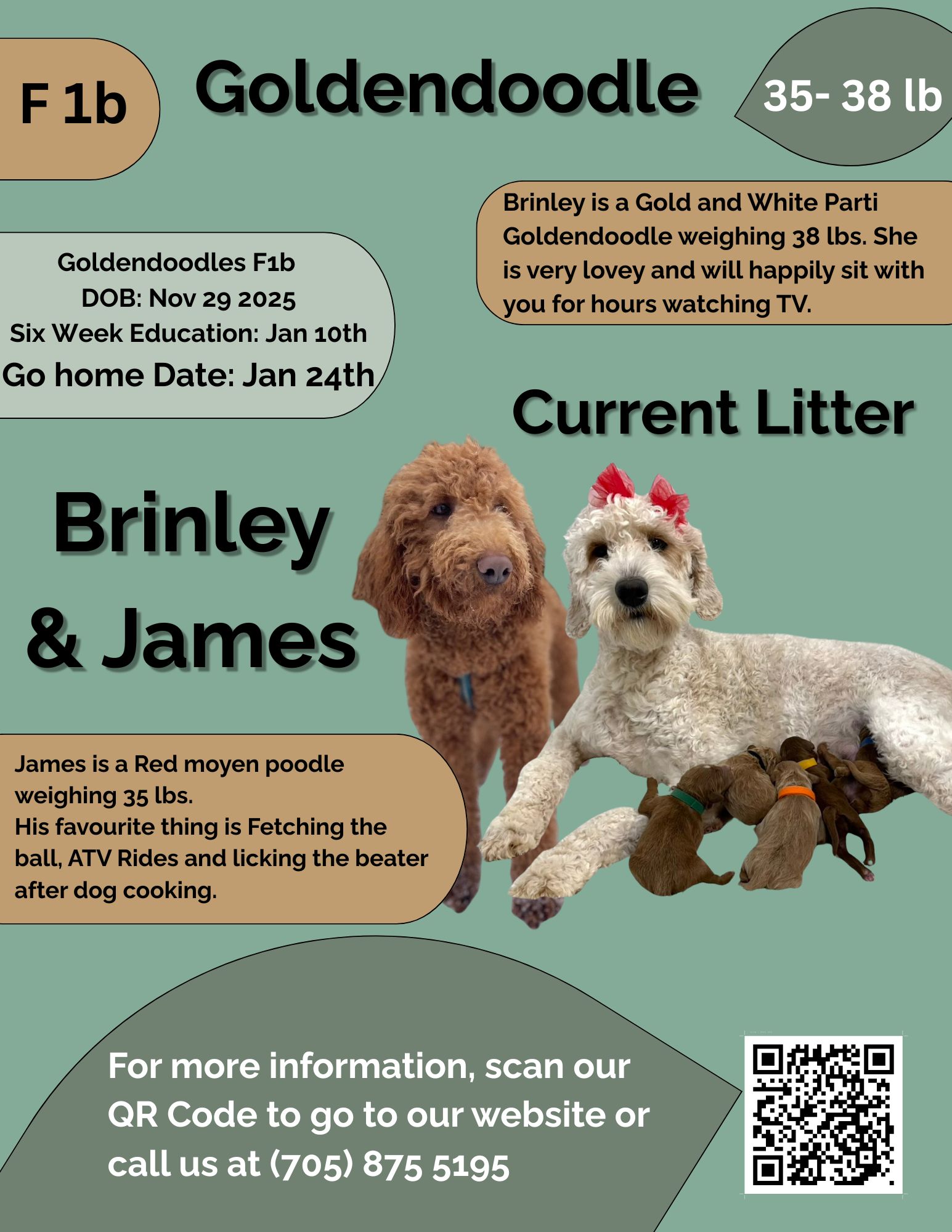 Expected: puppies will be f 1 b curly coat- approxiately 28-30 lbs on average as adults. Considered to be moyen size.