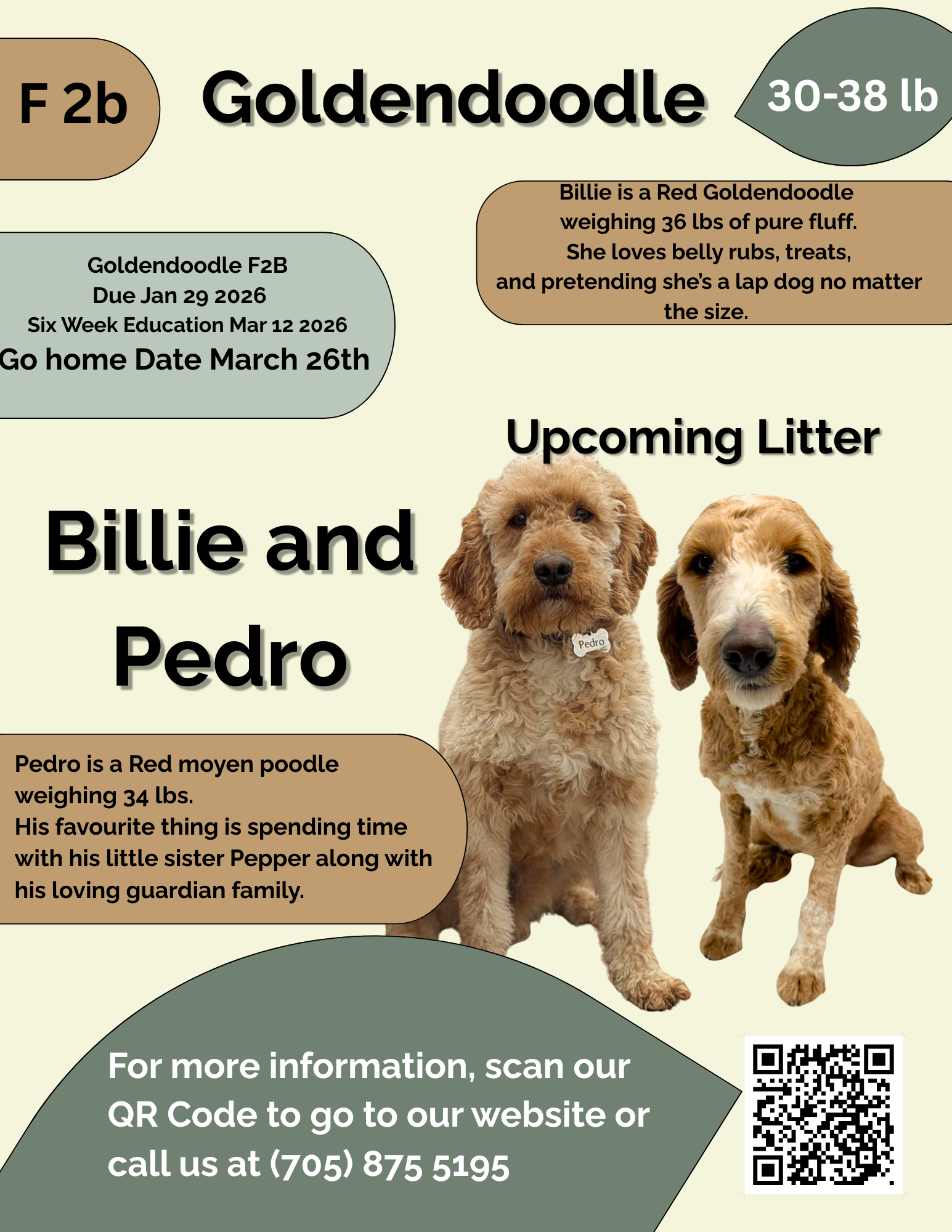 Billie is a Red Goldendoodle weighing 36 lbs of pure fluff. She loves belly rubs, treats, and pretending she’s a lap dog no matter the size.