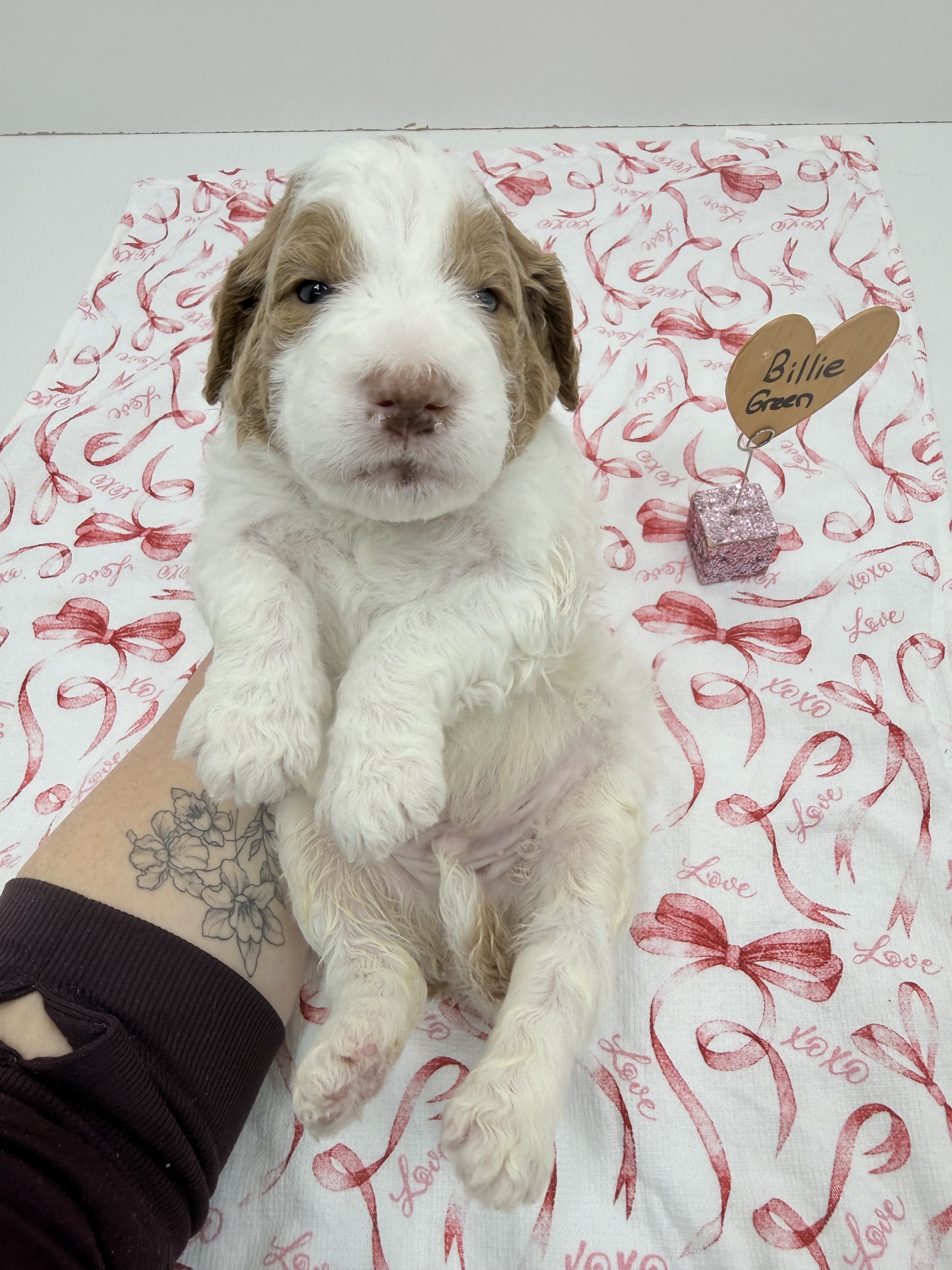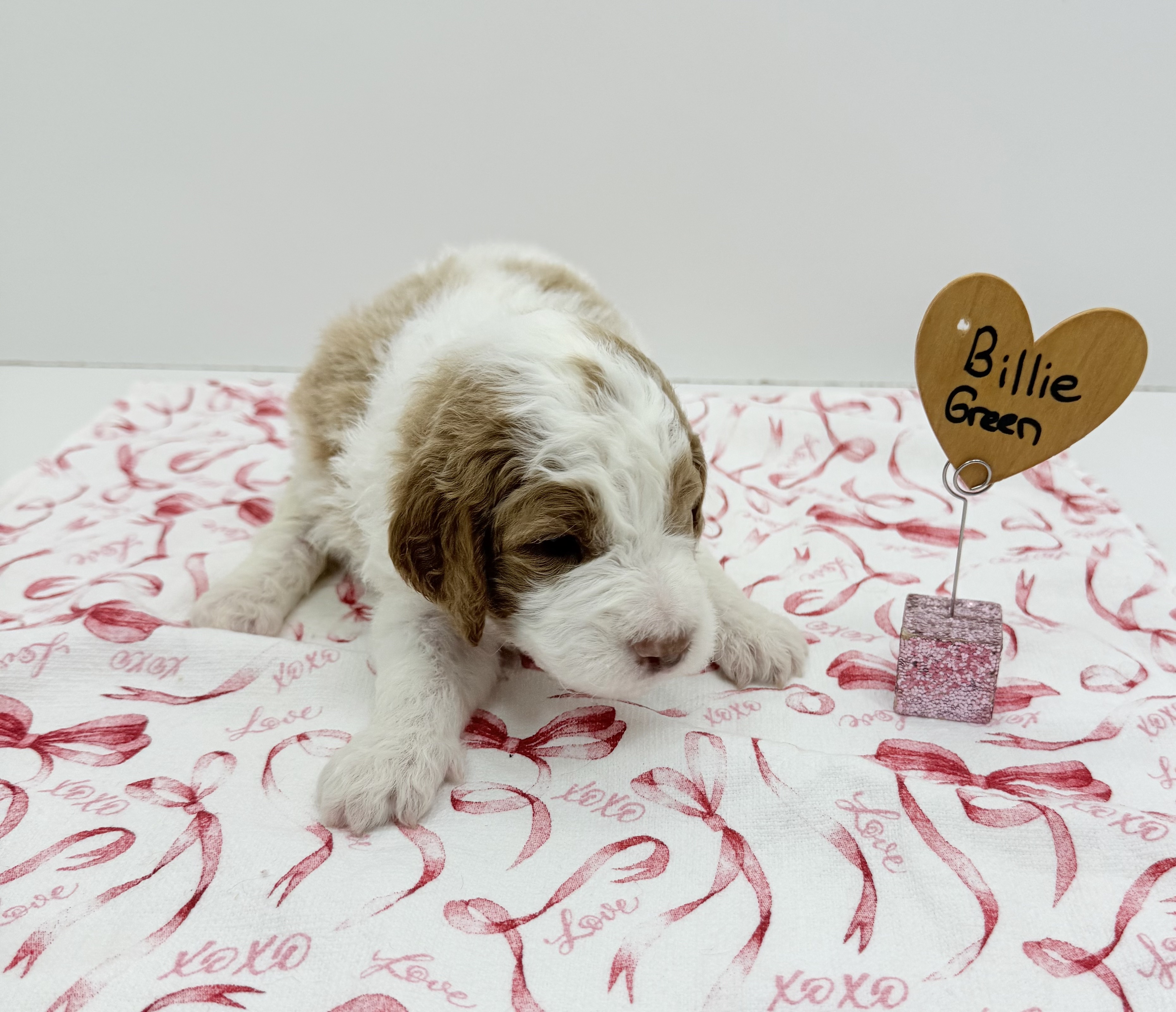 Billie is a Red Goldendoodle weighing 36 lbs of pure fluff. She loves belly rubs, treats, and pretending she’s a lap dog no matter the size.