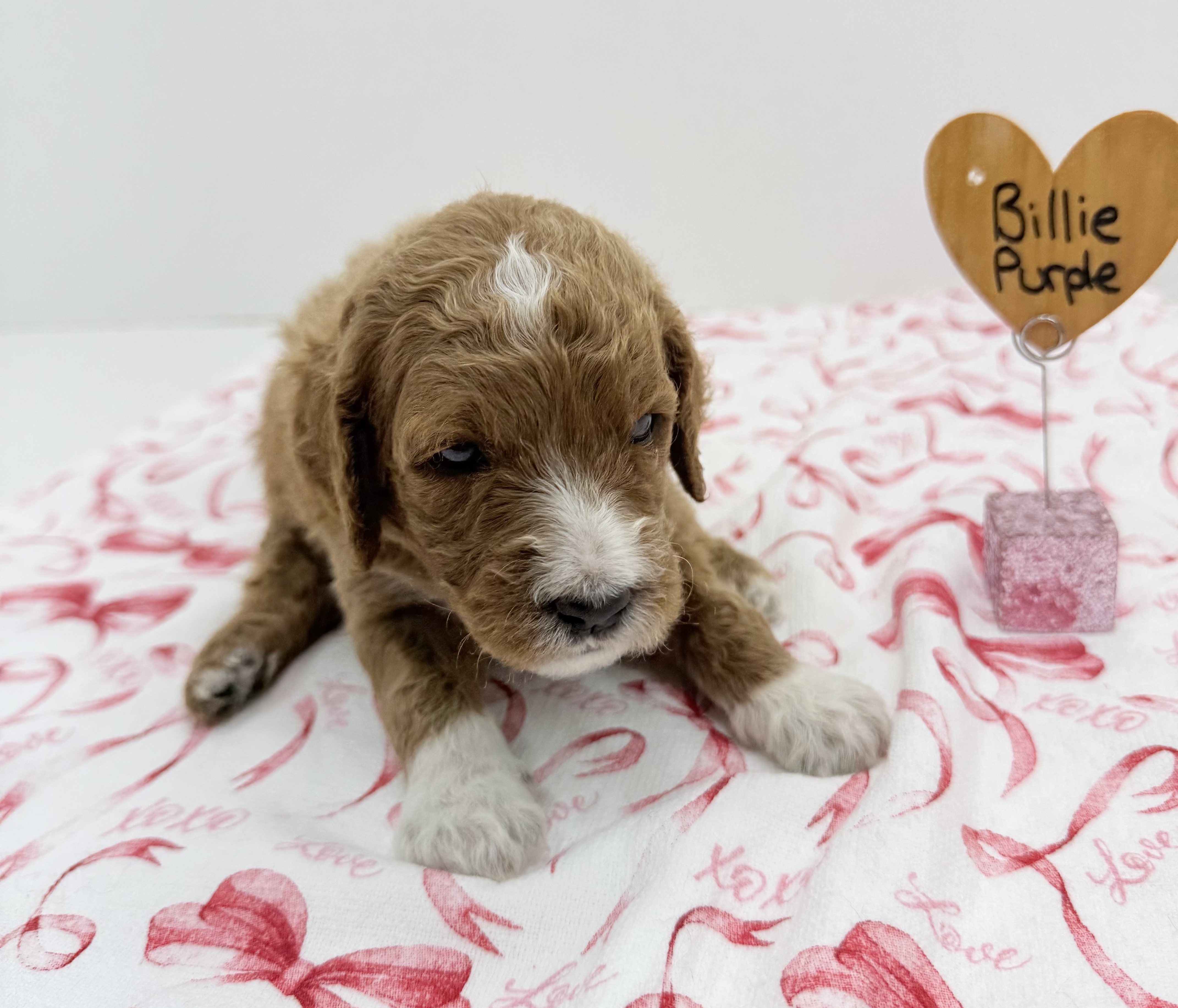 Billie is a Red Goldendoodle weighing 36 lbs of pure fluff. She loves belly rubs, treats, and pretending she’s a lap dog no matter the size.