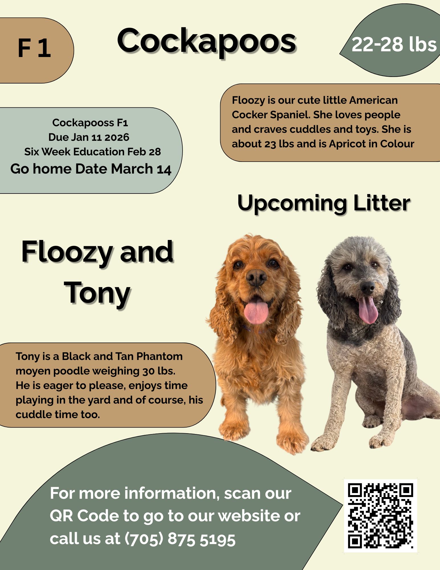 Floozy is our cute little American Cocker Spaniel. She loves people and craves cuddles and toys. She is about 23 lbs and is Apricot in Colour