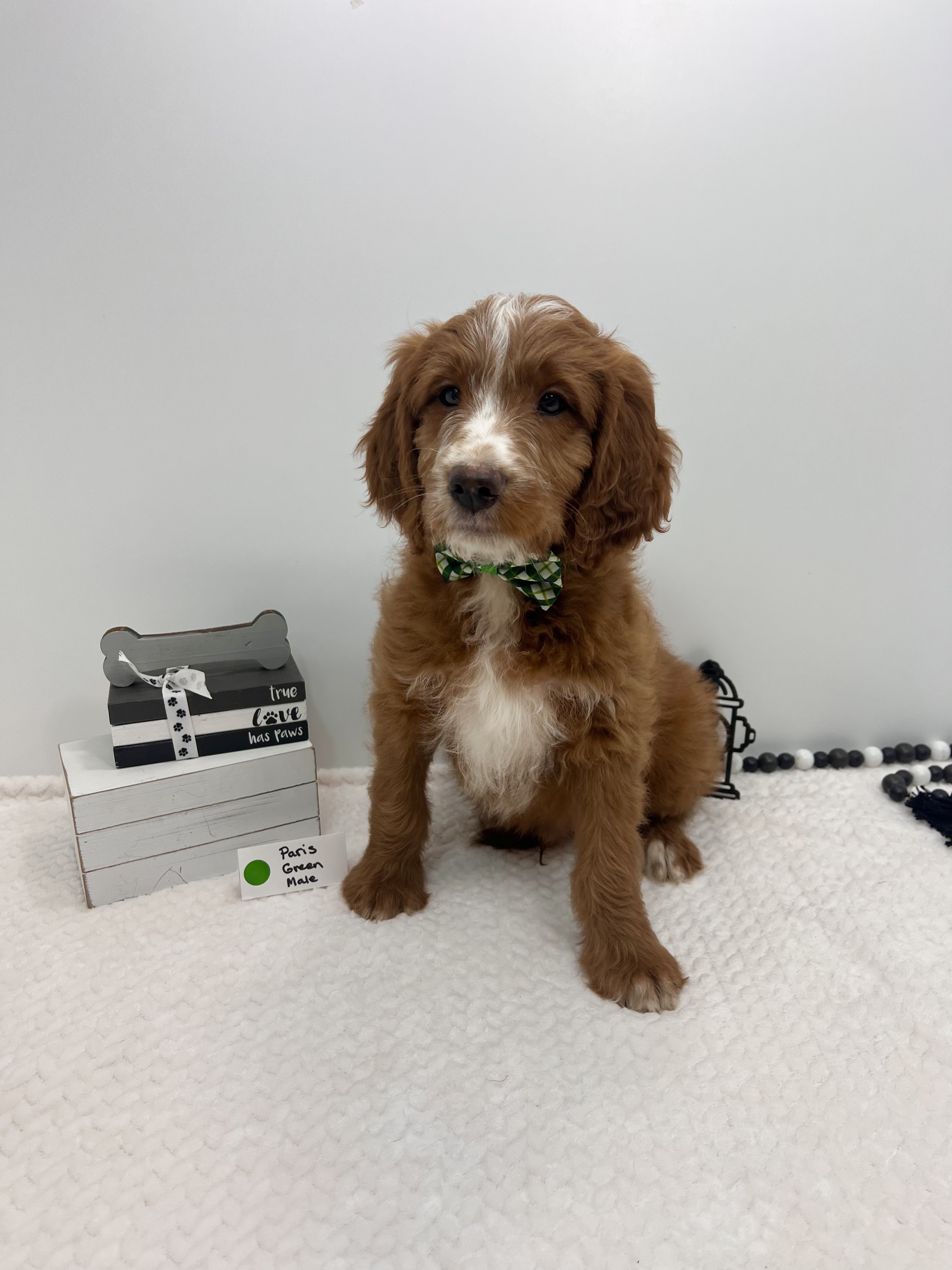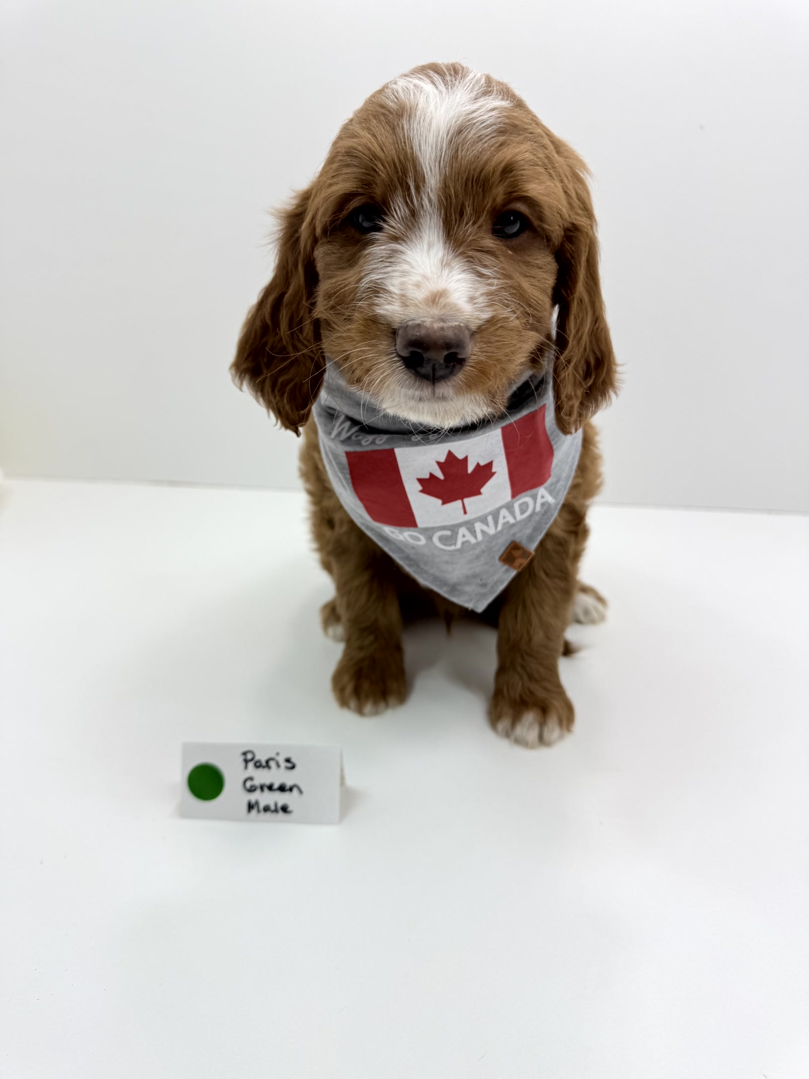 Paris is a Red Golden Retriever, Walker is a Red with white Moyen Poodle